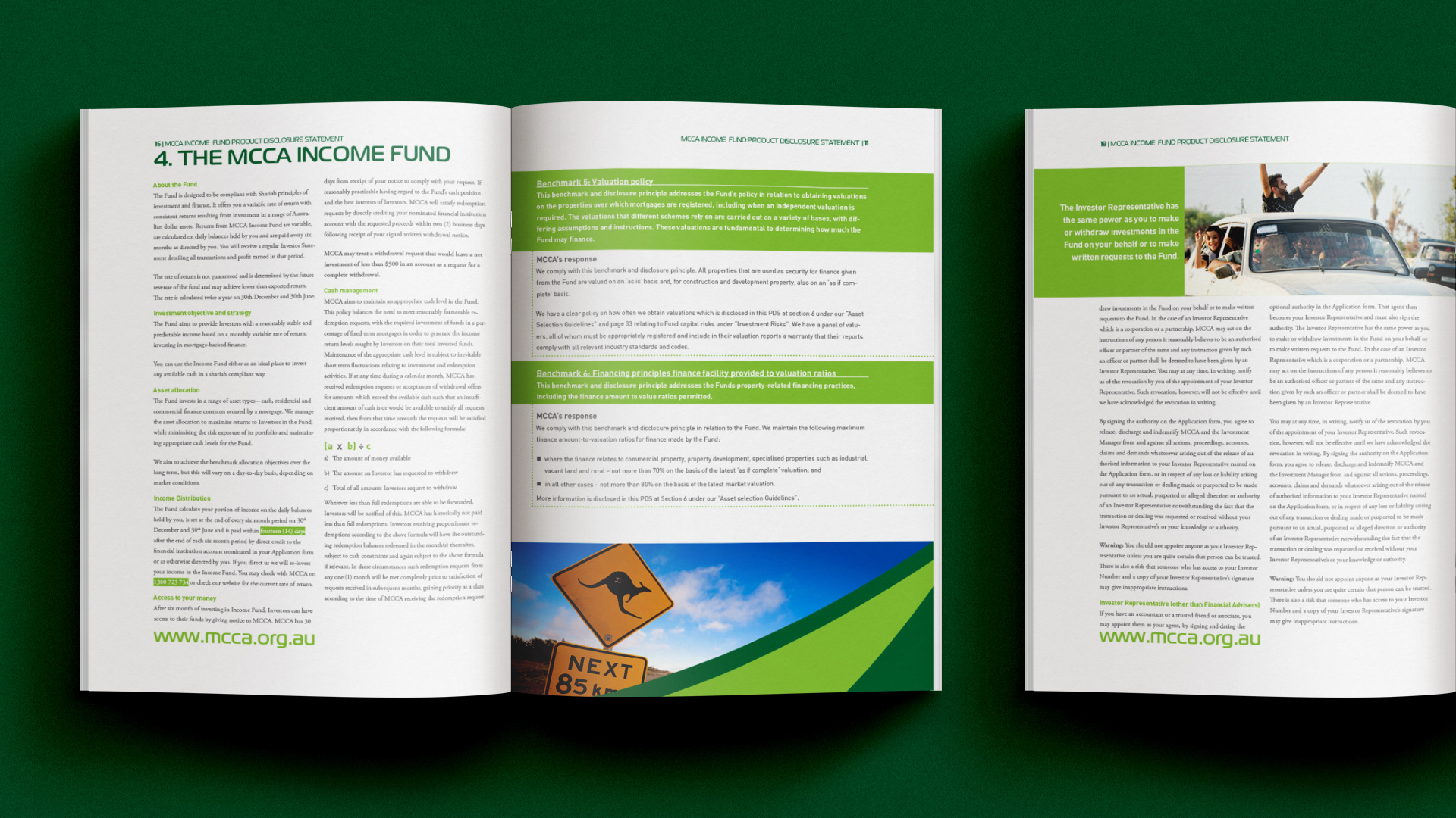 For MCCA, I designed the Mutual Fund Document, with a focus on clean typography, and well-structured page layouts.